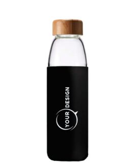 Bouteille d’eau publicitaire en verre avec manchon silicone noir