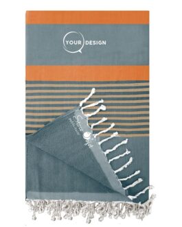 • Fouta doublée éponge bleu ciel, orange et marron Vue rapide
