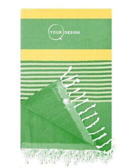 • Tunisian Fouta flat weave lined with two-tone striped sponge Material 100% cotton Origin: Tunisia Homemade Very absorbent and dries quickly Finish: hand-knotted fringes on both sides Warp and weft color: forest Background color: mustard and sage Dimensions: 100 x 200 cm Model for children:…