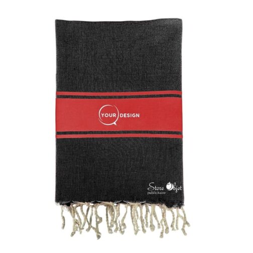 Fouta plate authentique bicolore noir et rouge cerise